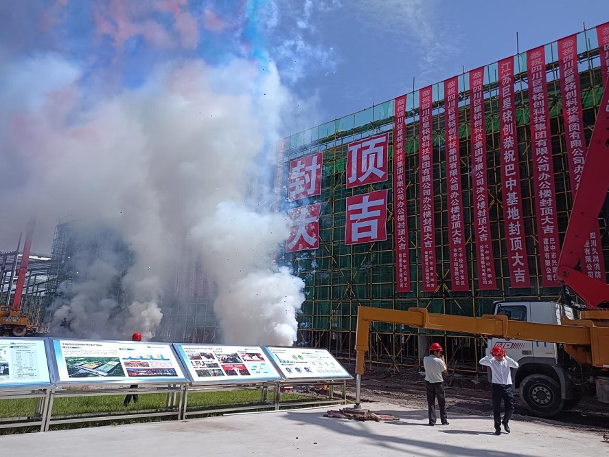 该项目位于四川省巴中市经开区东部协作产业园,该项目于2021年12月22日开工,占地150亩,总建筑面积5.5万平方米,共配有生产车间4个,分别为开平车间、喷涂车间、钣金车间、装配车间以及配套办公楼,是巴中市区政府重点推进项目,项目开发建设过程中,各施工单位通力协作、攻坚克难,终于迎来了办公大楼主体部分顺利封顶。目前厂房钢结构正在有序的建设中,预计六月底全部实现封顶,今年七月份交付。